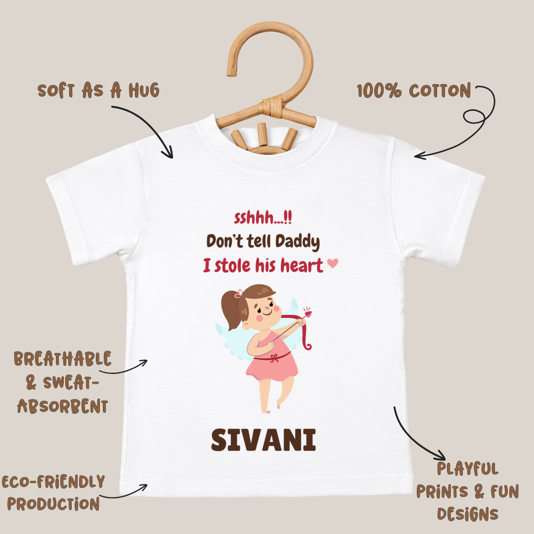 Dont Tell Daddy I Stole His Heart - Customisable Kids Tshirt