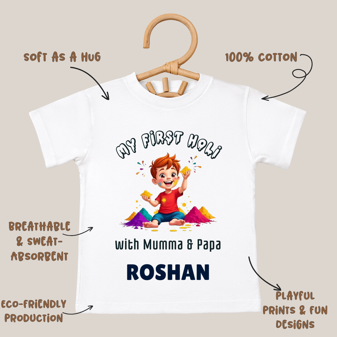 First Holi With Mumma & Papa - Customisable Kids Tshirt