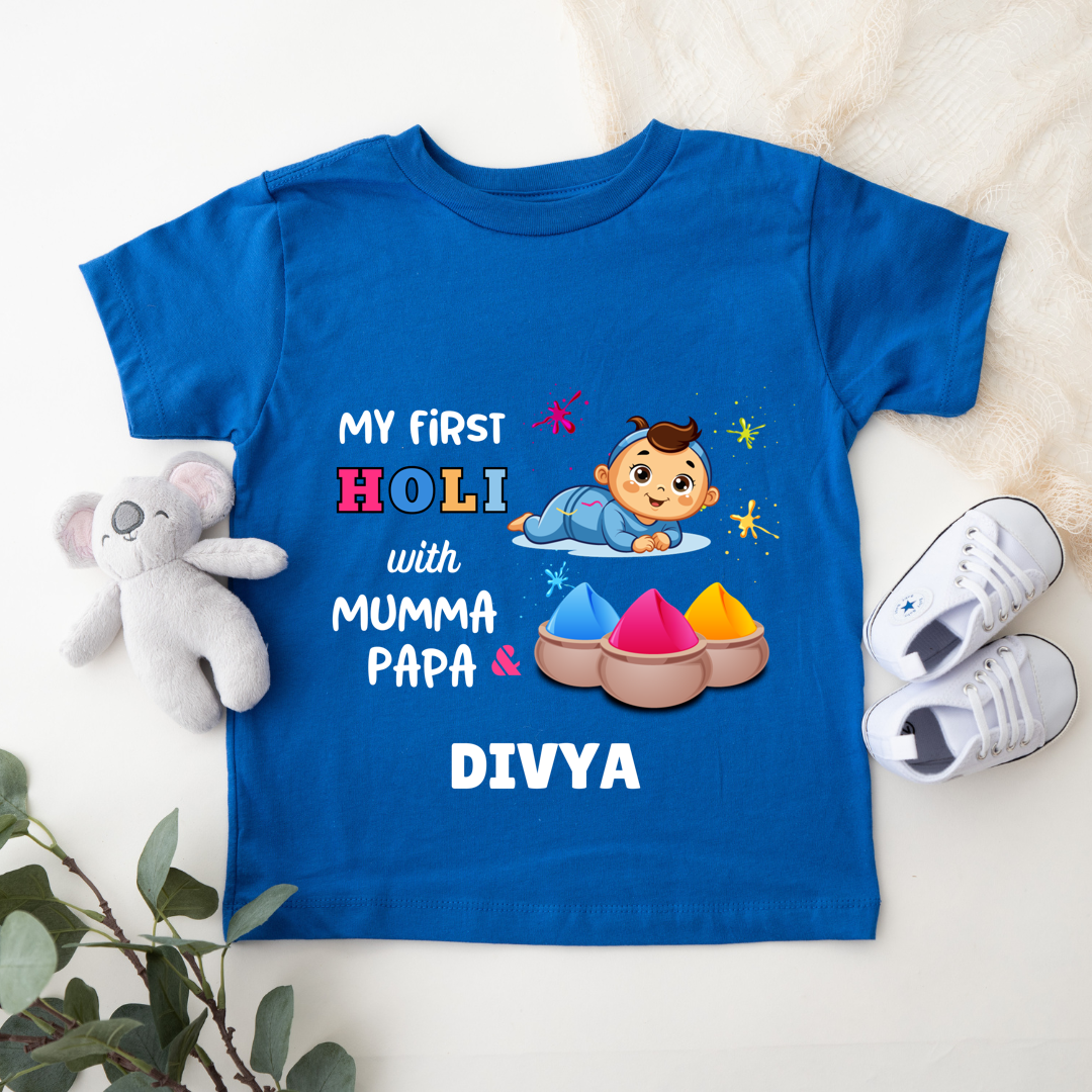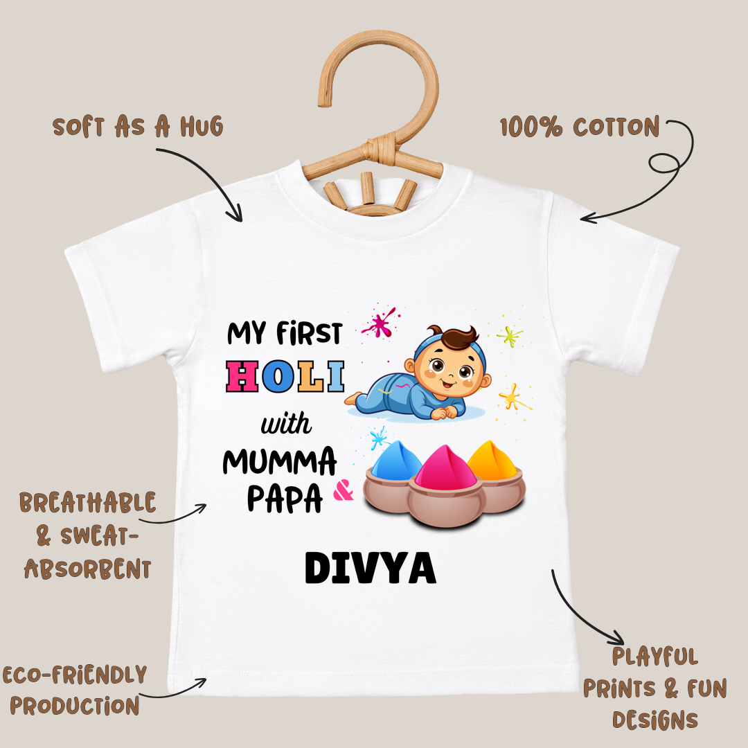 First Holi With Mumma & Papa - Customisable Kids Tshirt