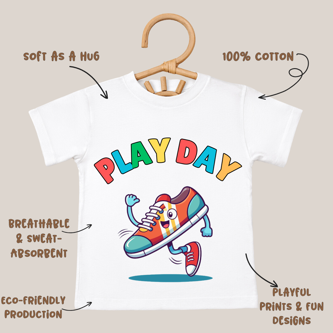 MATERIAL : Crafted from the finest 100% cotton, this super soft and lightweight t-shirt keeps your child cool and comfortable. Designed for all seasons, it features a regular fit perfect for casual and daily wear. The high-quality fabric ensures no irritation, making it gentle on your child's skin. With its unique print, short sleeves, and crewneck, this tee perfectly complements your child's innocence.