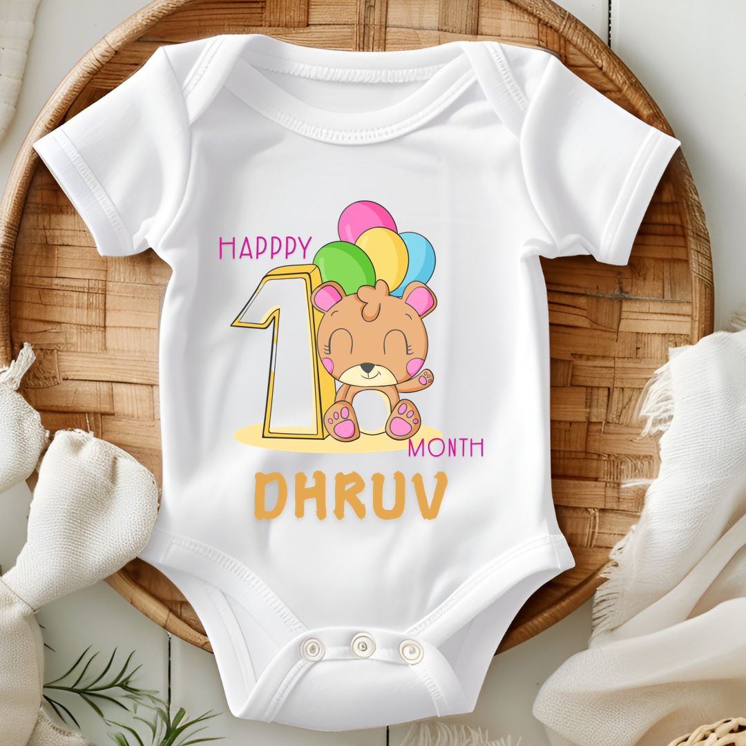 Teddy One Month Milestone With Custom Baby Name - Romper